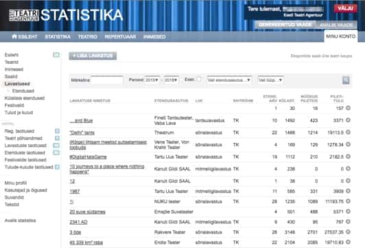 Eesti Teatri Agentuur Kodulehekülg, API andmevahetusliides ja töökeskkond