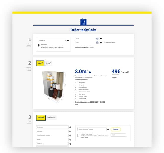 Taskulaod Ordering and administration interface